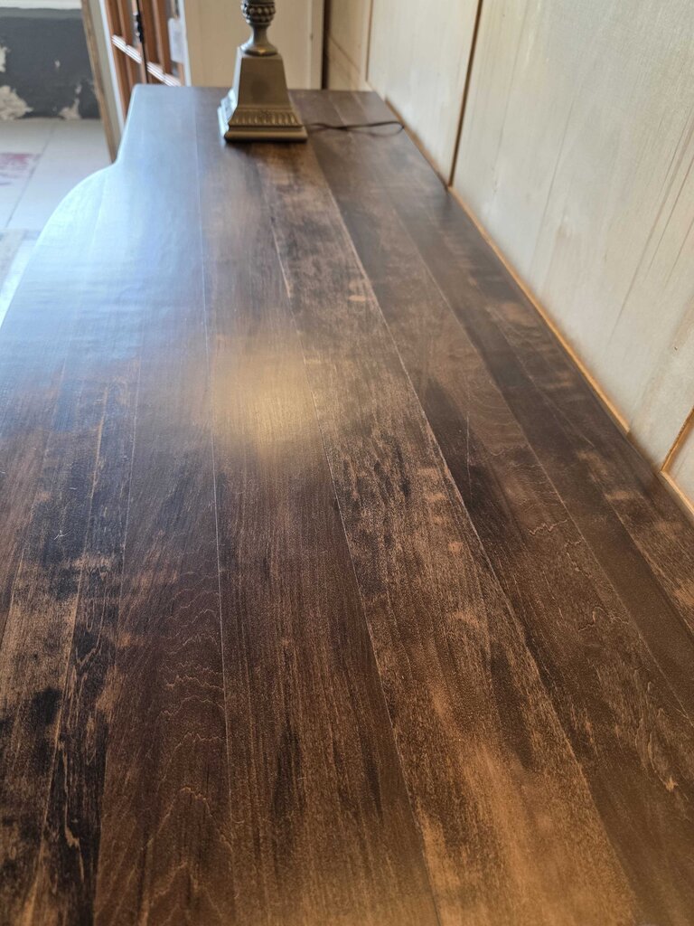 This is a refinished Duncan Phyfe sideboard buffet, painted in a beautiful blue featuring a dark mocha stain with original hardware.